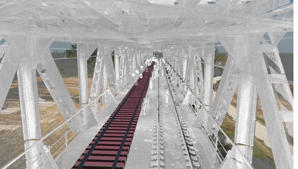 Thanks to accurate mapping & surveying with V-Drone, we created a digital twin of the bridge, which allowed us to identify the position of the 5,600 drill holes for fixing the sleepers with millimeter precision.